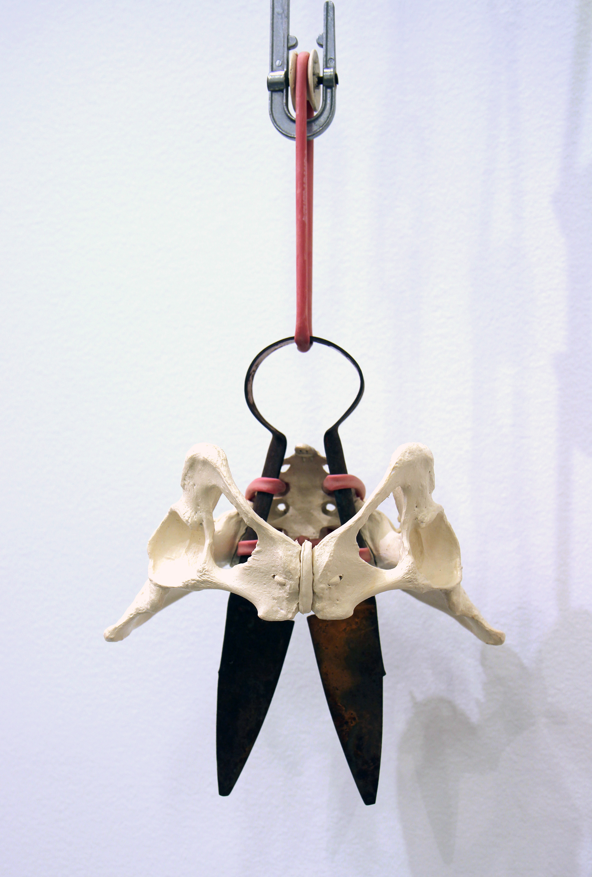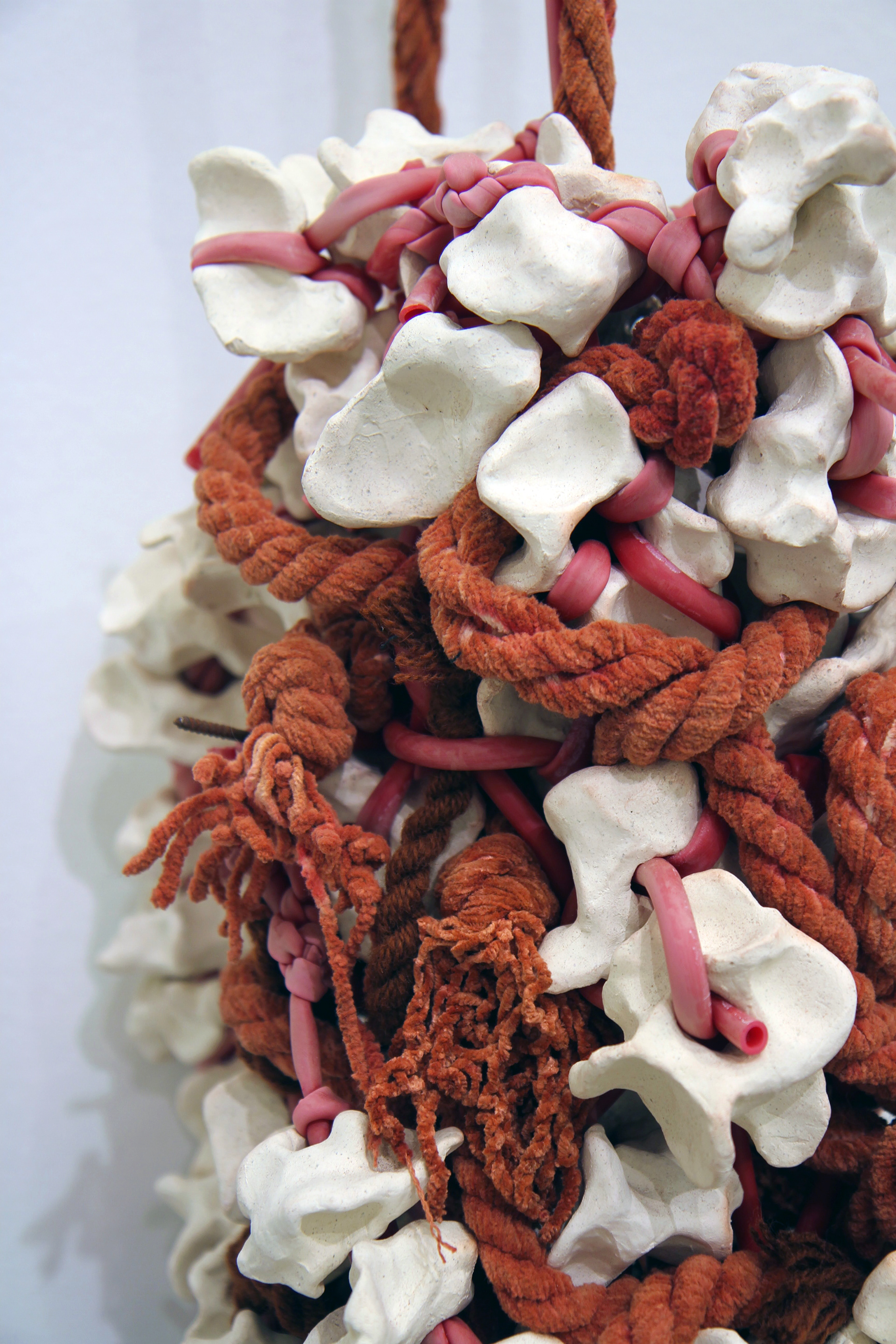 handmade rope, ceramics, theraband tubing, anatomical model, rusty shears, used hardware